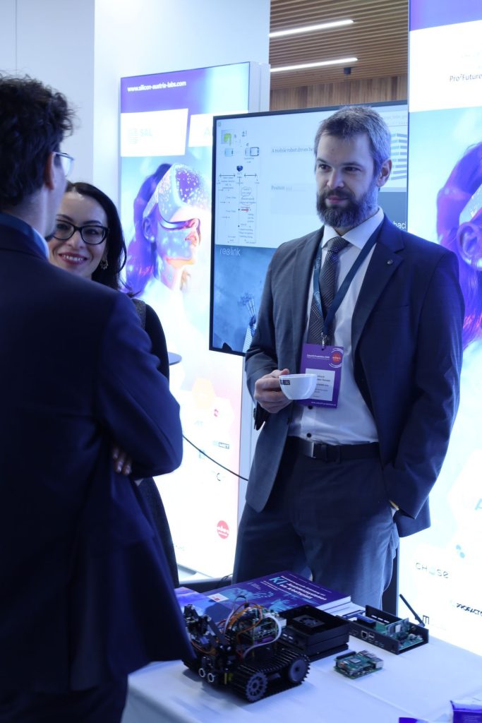 In his keynote “COMPANIONS – How Physical AI Will Transform Industry” Area Manager of the Area Perception, Michael Haslgrübler, introduced learning, physically embedded AI systems designed to operate directly within real production environments. The focus was on the strategic integration of AI algorithms into machines, sensors and industrial infrastructures. Physical AI enables new forms of interaction, adaptability and resilience in complex manufacturing systems. COMPANIONS represents intelligent systems that go beyond data analytics. They actively cooperate with operators and equipment, interpret processes in real time and make decision logics transparent and explainable.